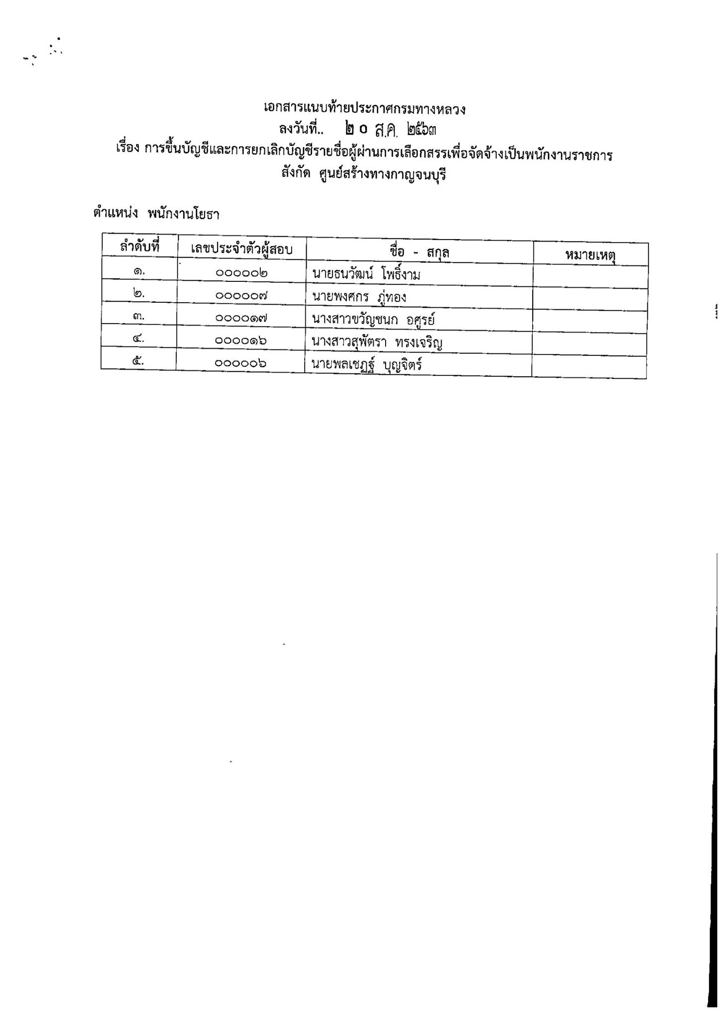 ข้อมูลประกาศรับสมัครพนักงานราชการ : test