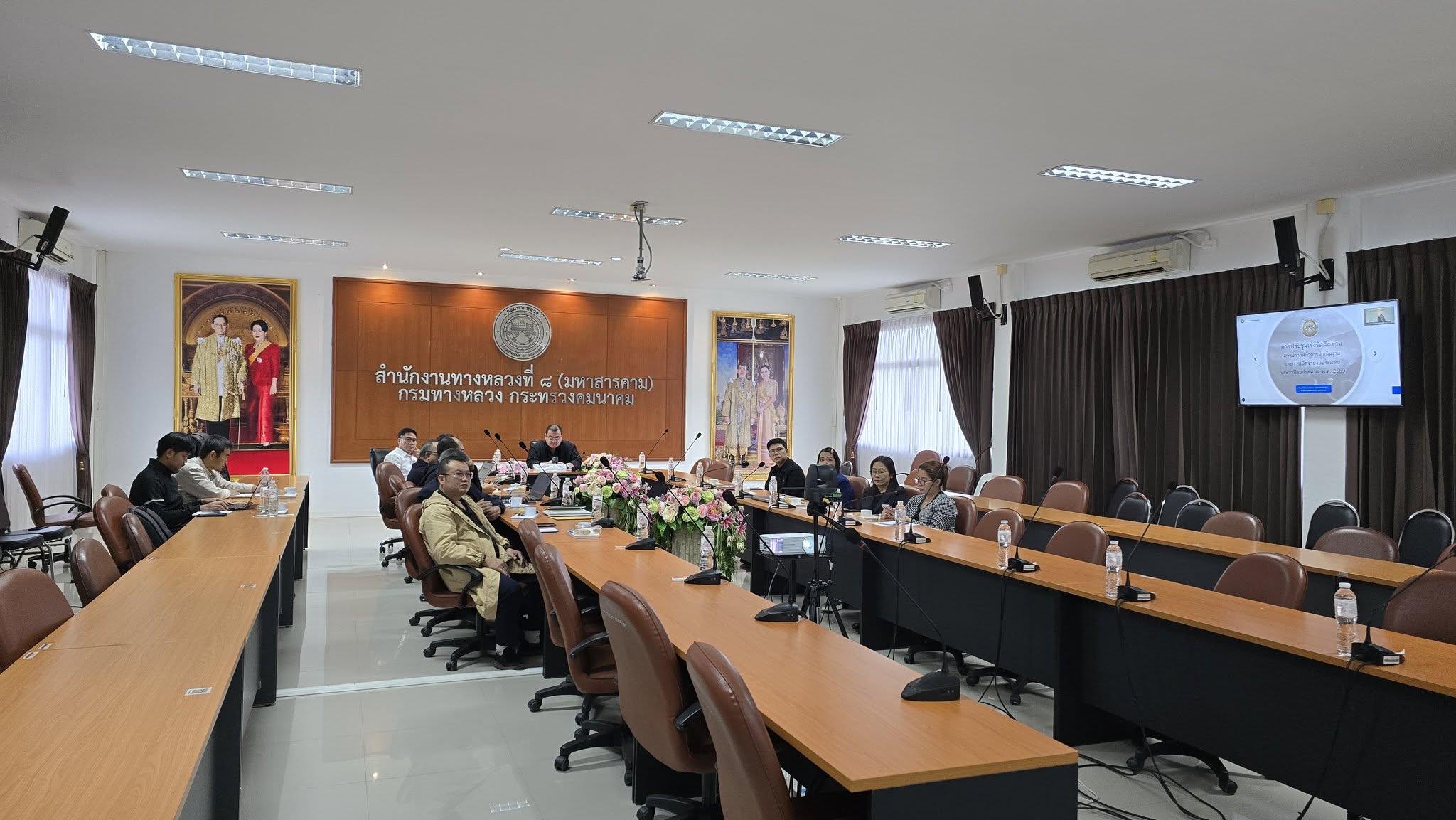 วันศุกร์ ที่ 21 พฤศจิกายน 2568 เวลา 09.30 น. นายราชศักดิ์ สุทธินวล ผู้อำนวยการสำนักงานทางหลวงที่ 8 พร้อมด้วย นายศักดิพงษ์ ธีรเนตร รองผู้อำนวยการสำนักงานทางหลวงที่ 8 ผู้อำนวยการส่วนฯ และข้าราชการในสังกัด เข้าร่วมประชุมเร่งรัดติดตามผลการดำเนินงานและการเบิกจ่ายงบประมาณรายจ่าย ประจำปีงบประมาณ พ.ศ. 2569 ผ่าน Application “ZOOM” เพื่อติดตามเงินกันไว้เบิกเหลื่อมปี 2568 สรุปผลการเบิกจ่ายและสถานะการดำเนินงานของงบประมาณรายจ่ายประจำปีงบประมาณ พ.ศ.2569 ณ ห้องประชุมพระธาตุนาดูน สำนักงานทางหลวงที่ 8 โดยมี นายปิยพงษ์ จิวัฒนกุลไพศาล อธิบดีกรมทางหลวง เป็นประธานในการประชุม