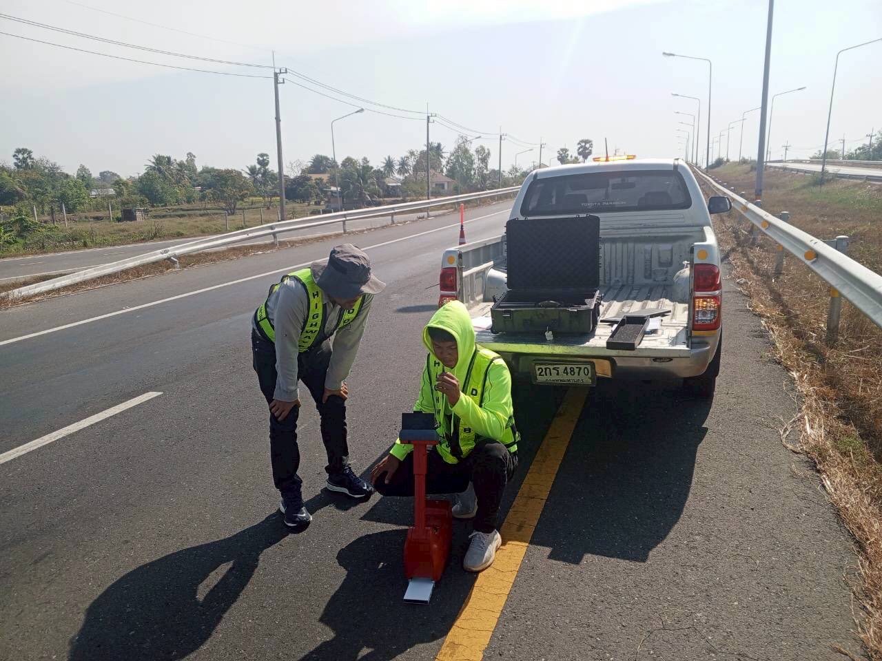วันศุกร์ ที่ 13 กุมภาพันธ์ 2569 นายราชศักดิ์ สุทธินวล ผู้อำนวยการสำนักงานทางหลวงที่ 8 มอบหมายให้ นายสุรศักดิ์ แพงวงษ์ ผู้อำนวยการส่วนอำนวยความปลอดภัย ร่วมกับสำนักวิเคราห์และตรวจสอบ นำเครื่องมือสำรวจวัดการสะท้อนแสงเครื่องหมายจราจรบนผิวทางแบบต่อเนื่อง (Dynamic Retroreflectometer) ทำการสอบเทียบ (Calibration) กับเครื่องมือวัดค่าการสะท้อนแสงเครื่องหมายจราจรบนผิวทางของสำนักงานทางหลวงที่ 8 พร้อมทั้งทดสอบการทำงานของเครื่องมือในพื้นที่