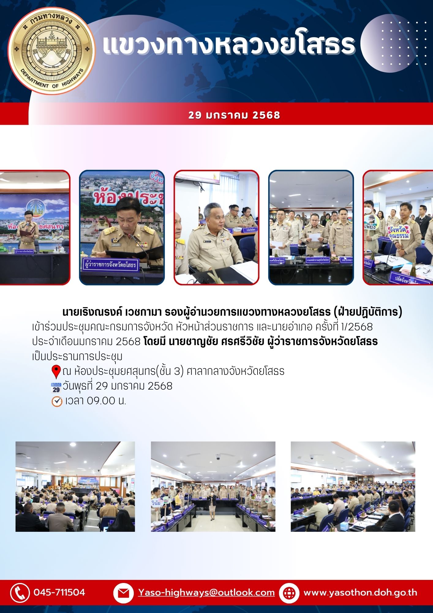 ประชุมคณะกรมการจังหวัด หัวหน้าส่วนราชการ และนายอำเภอ ครั้งที่ 1/2568 ประจำเดือนมกราคม 2568