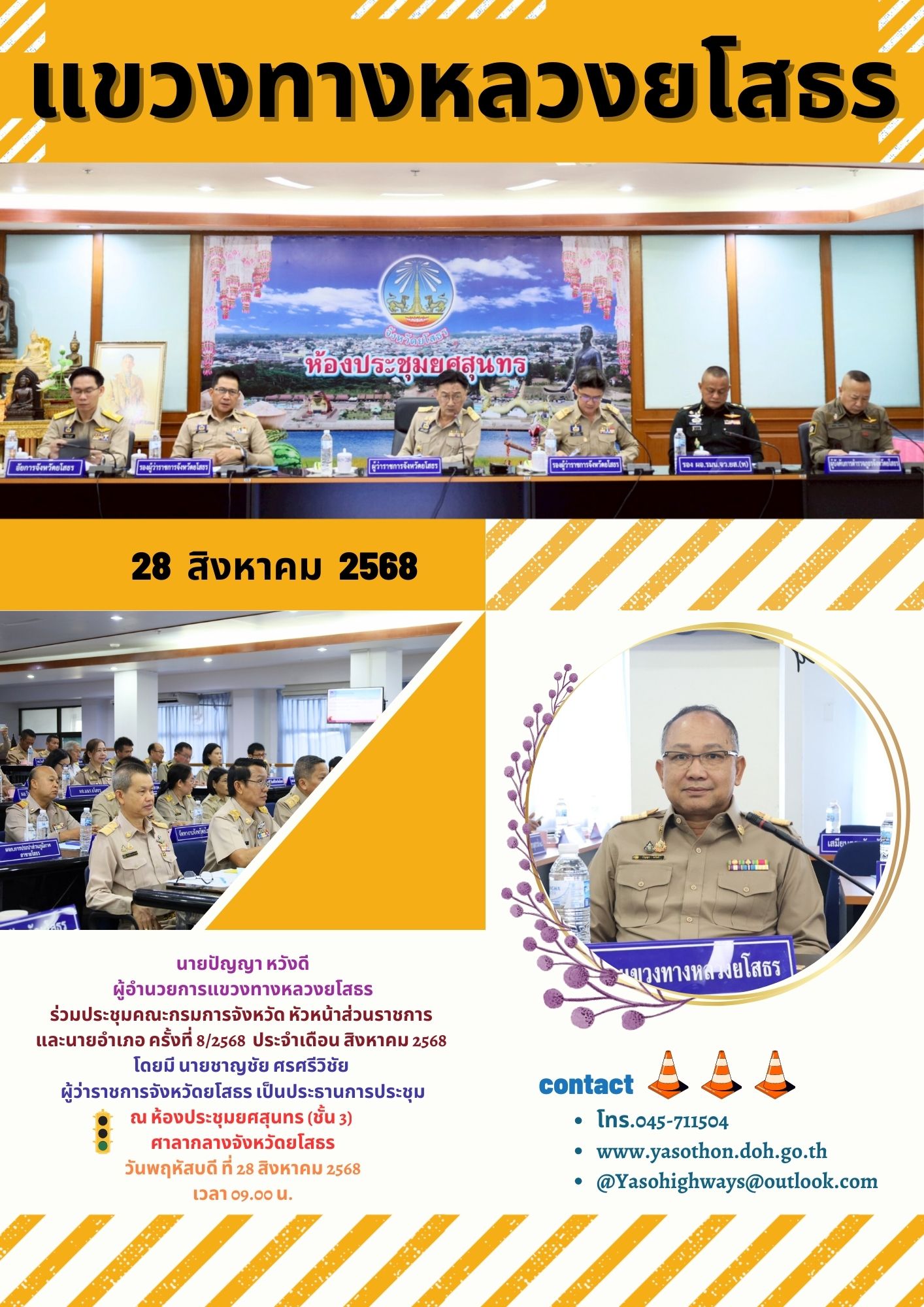 ประชุมคณะกรรมการจังหวัด หัวหน้าส่วนราชการ และนายอำเภอ ครั้งที่ 8/2568 ประจำเดือน สิงหาคม 2568