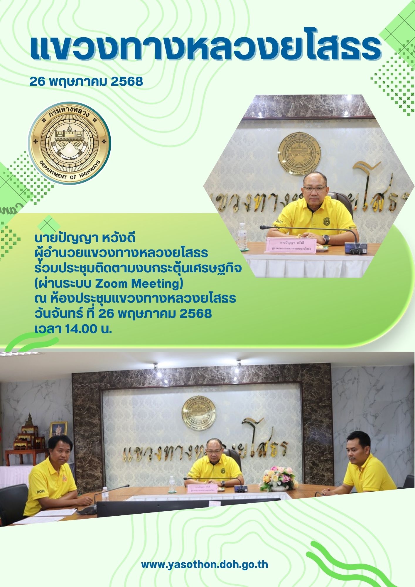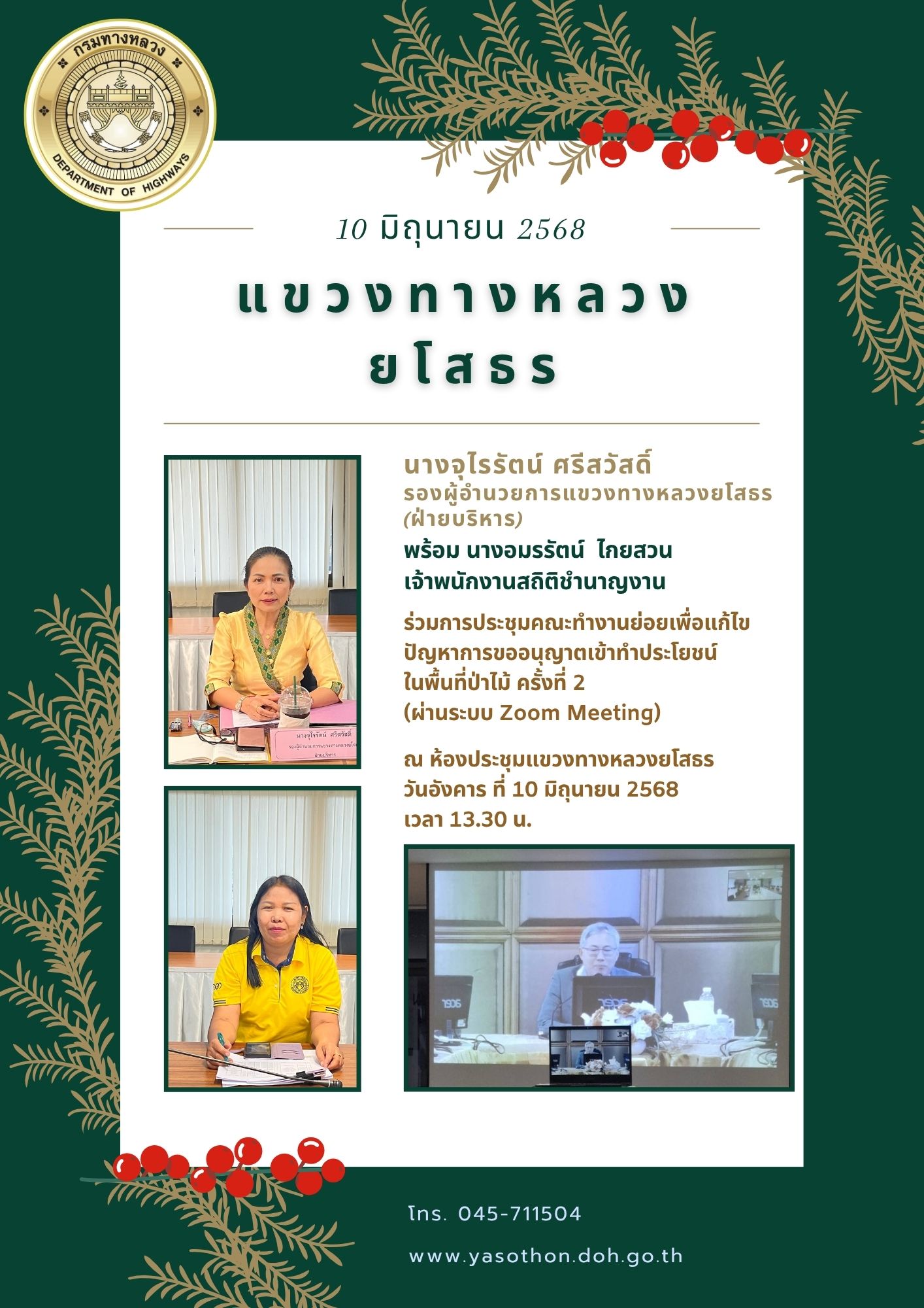 ประชุมคณะอนุกรรมการพิจารณากำหนดและปรับปรุงเงื่อนไขในใบอนุญาตประกอบการขนส่งไม่ประจำทาง ด้วยรถที่ใช้ในการขนส่งสัตว์หรือสิ่งของประจำจังหวัดยโสธร ครั้งที่ 4/2568