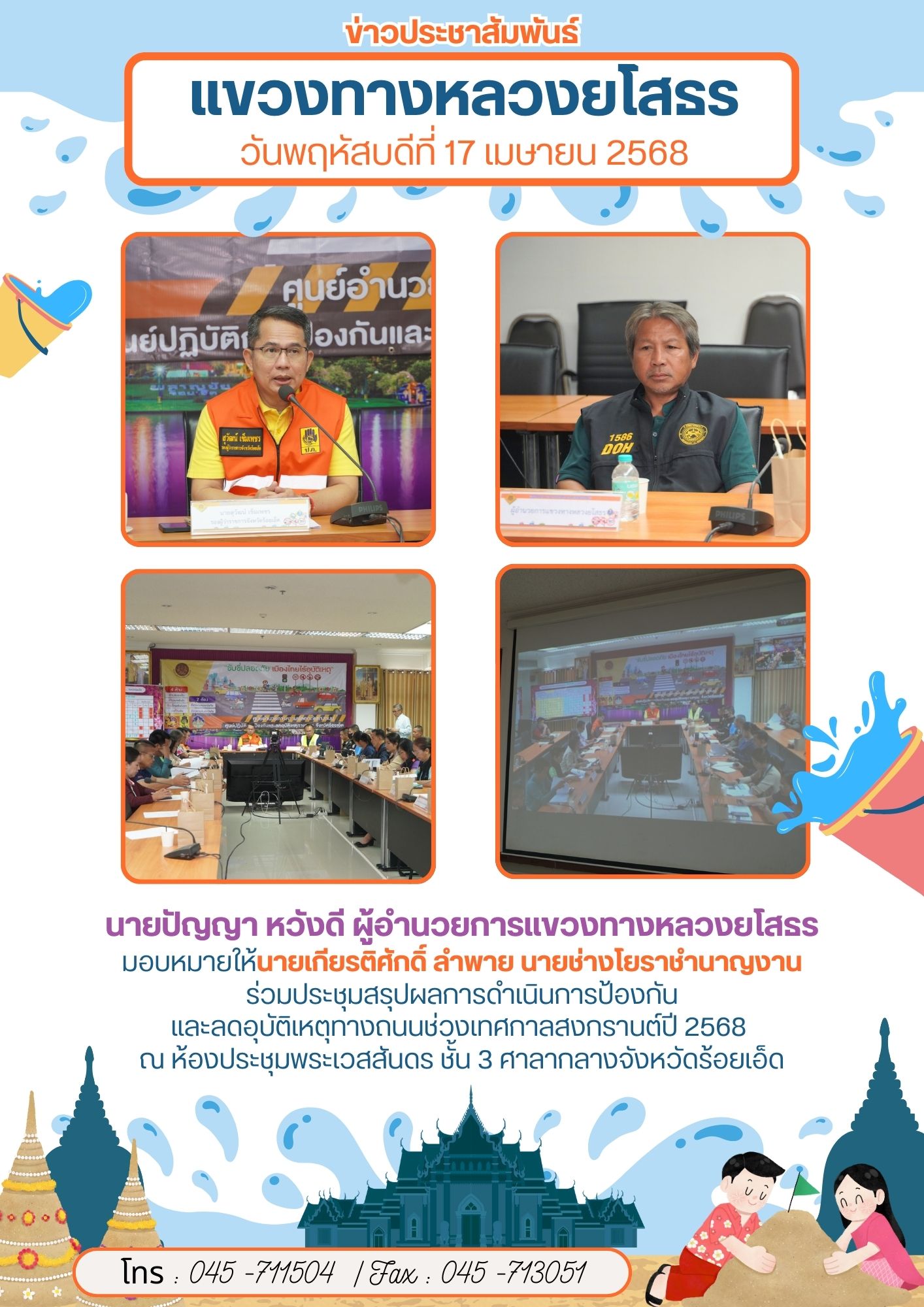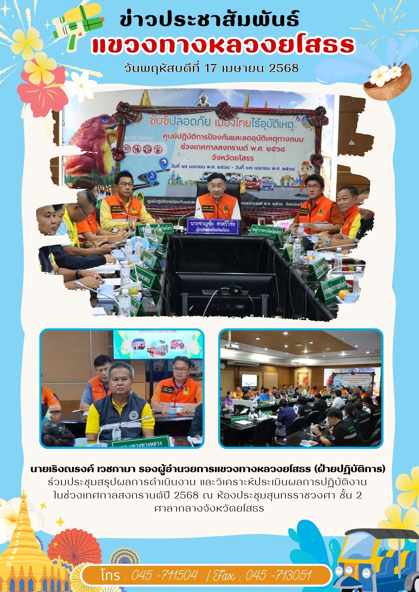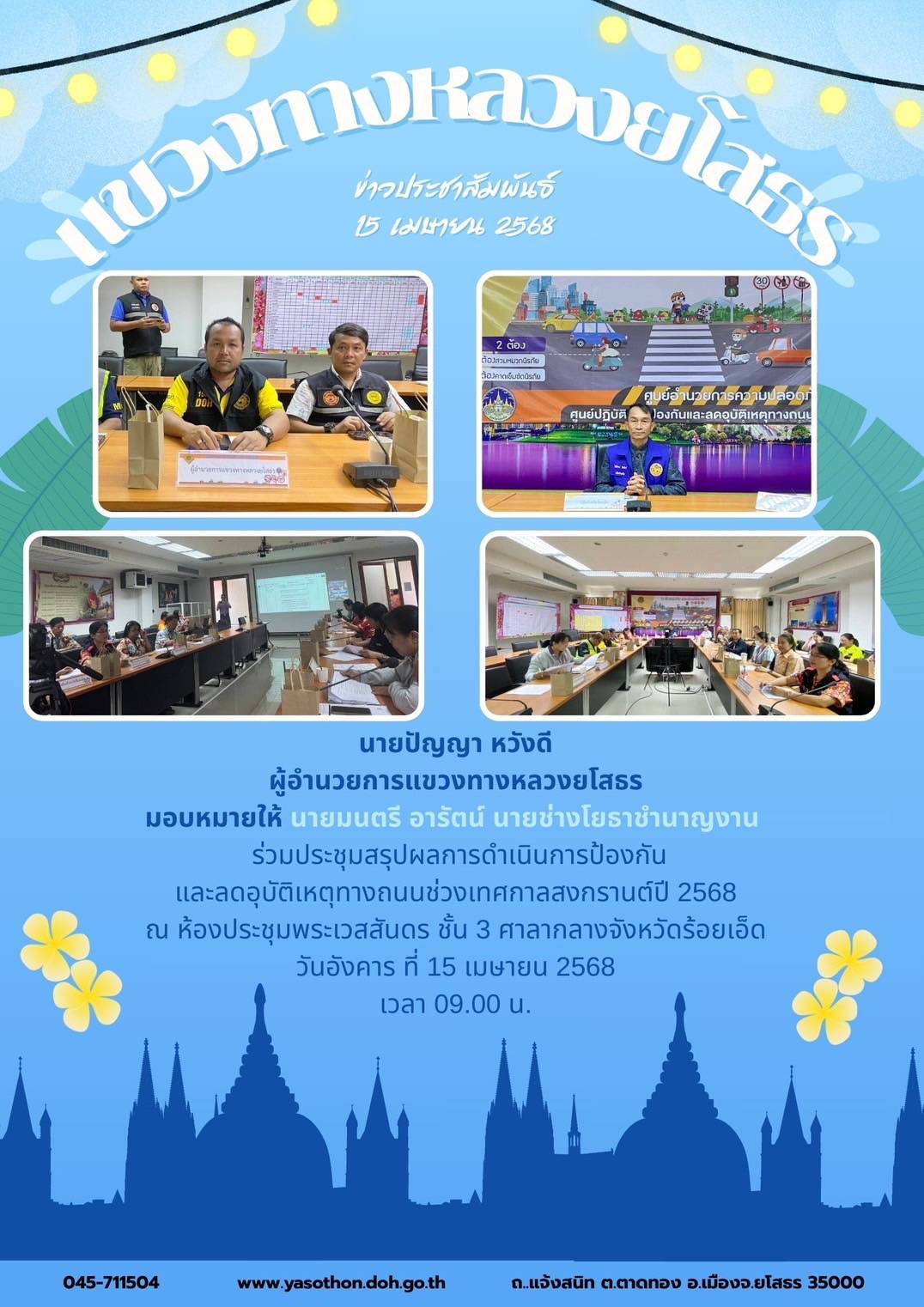 ประชุมสรุปผลการดำเนินงาน และวิเคราะห์ประเมินผลการปฏิบัติงาน ในช่วงเทศกาลสงกรานต์ปี 2568 จังหวัดยโสธร
