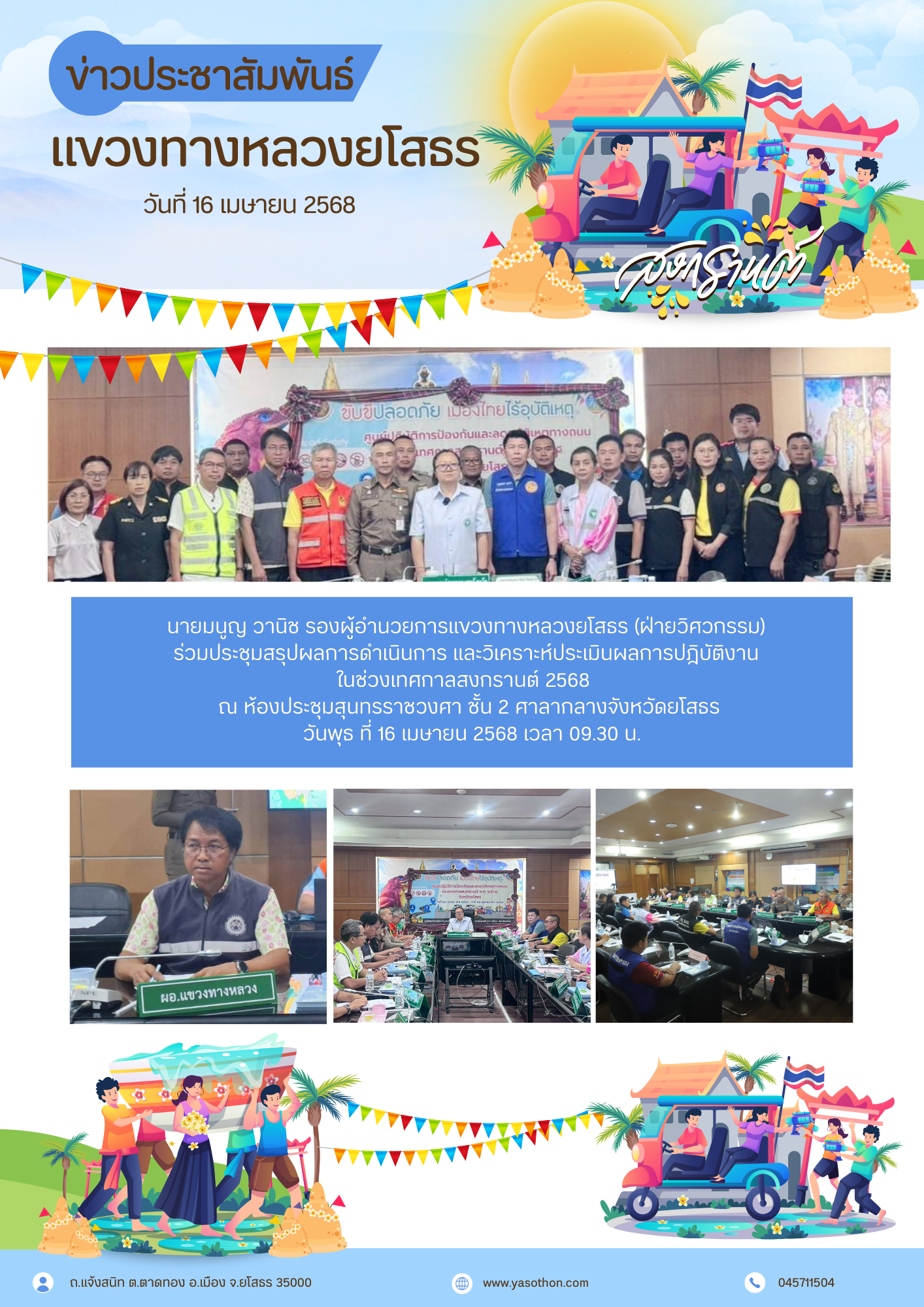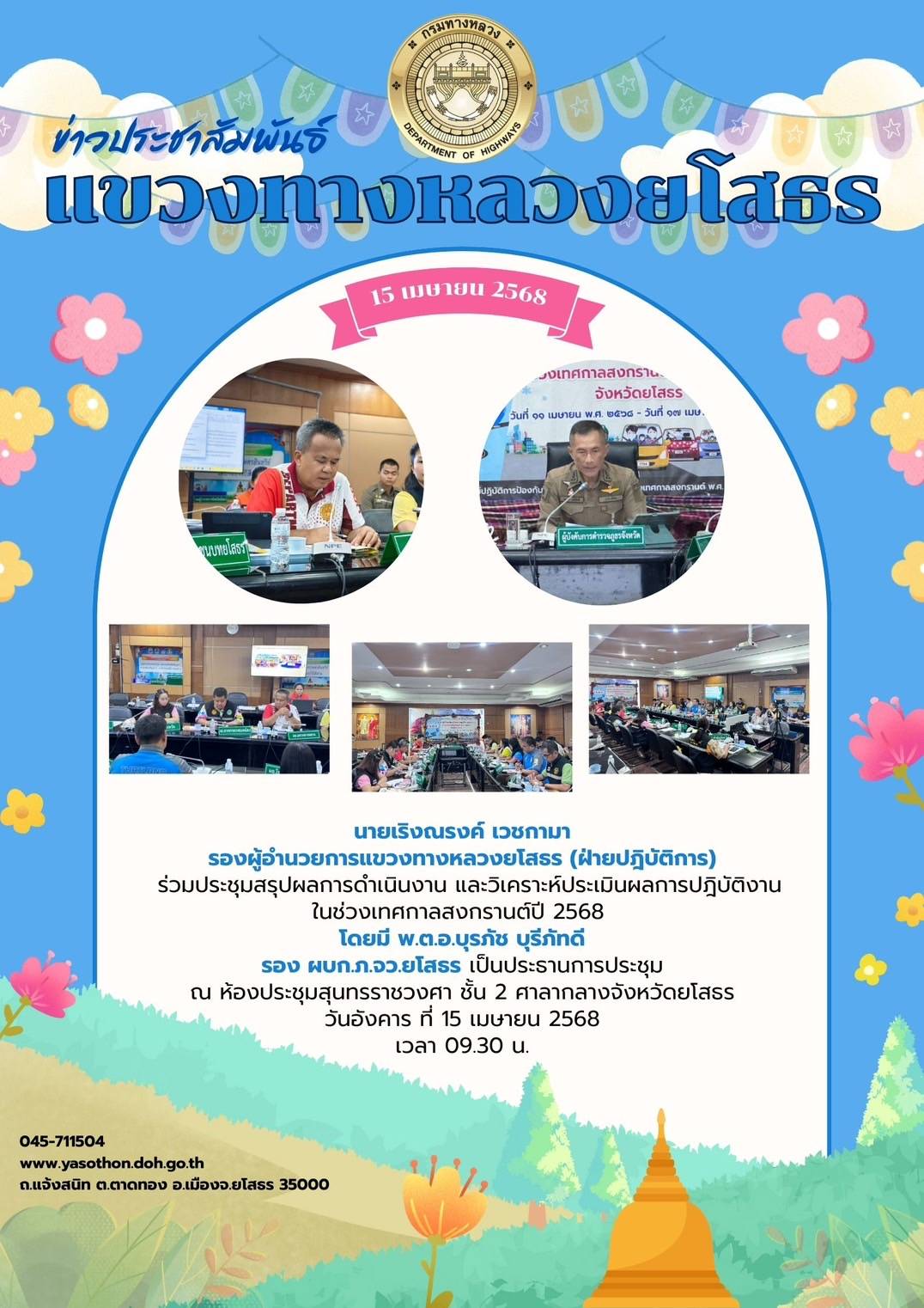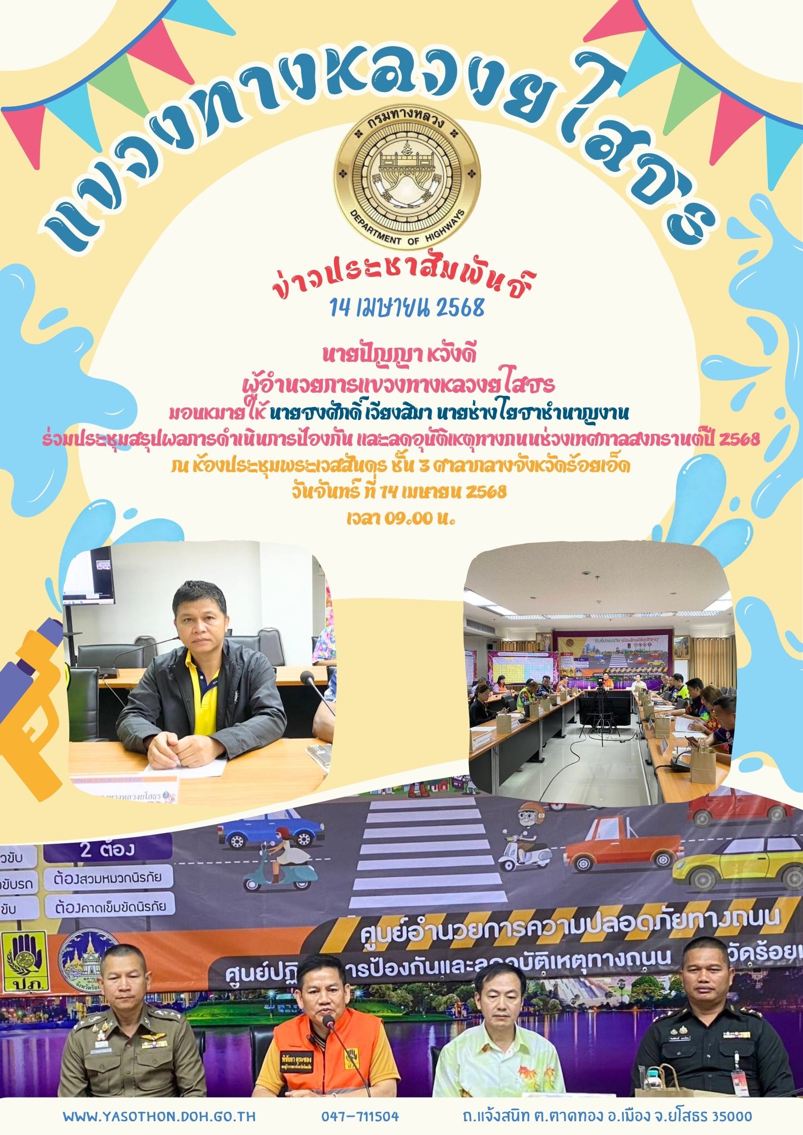 ประชุมสรุปผลการดำเนินงาน และวิเคราะห์ประเมินผลการปฏิบัติงาน ในช่วงเทศกาลสงกรานต์ปี 2568 จังหวัดยโสธร