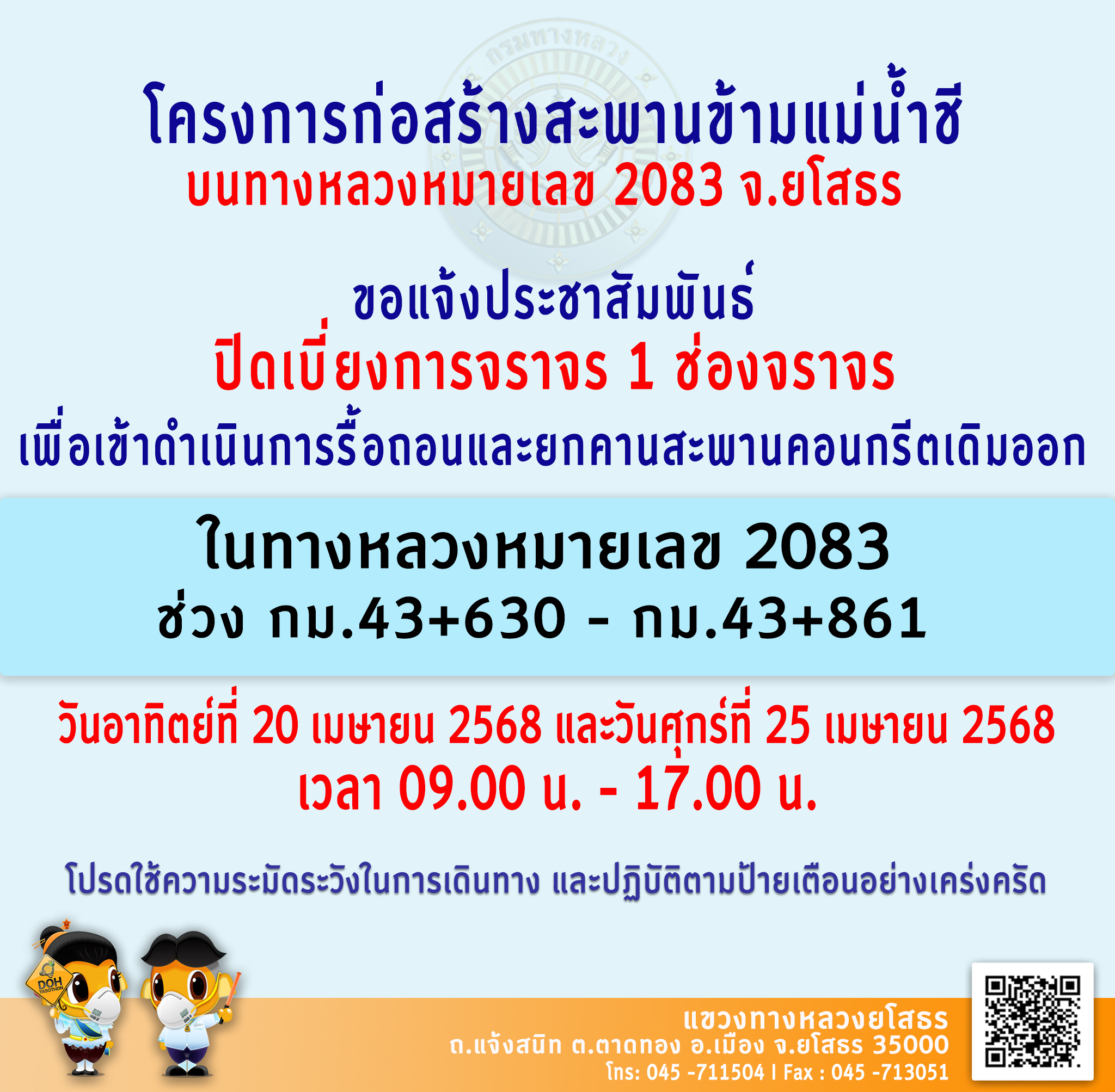 แจ้งประชาสัมพันธ์ ปิดเบี่ยงการจราจร 1 ช่องจราจร