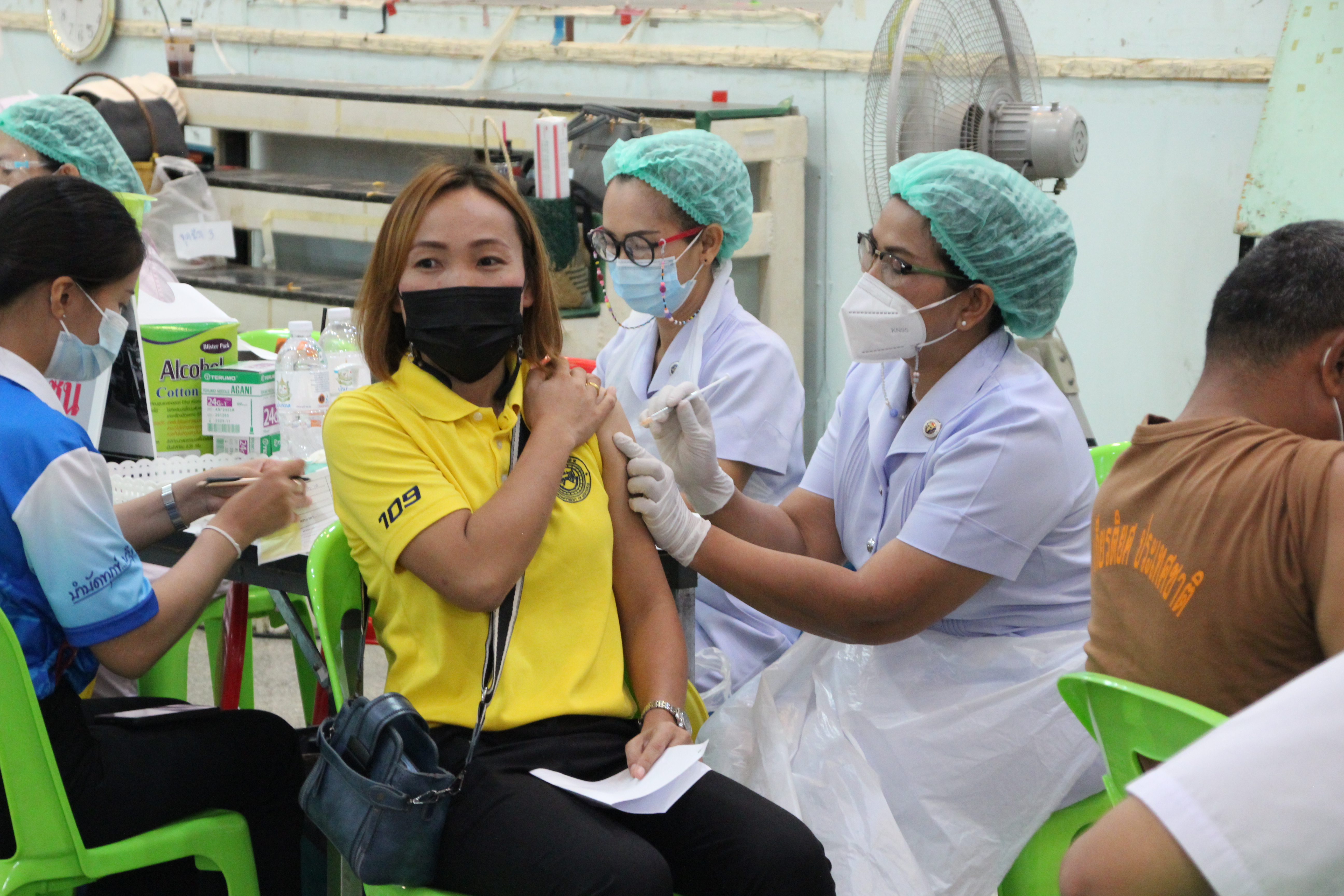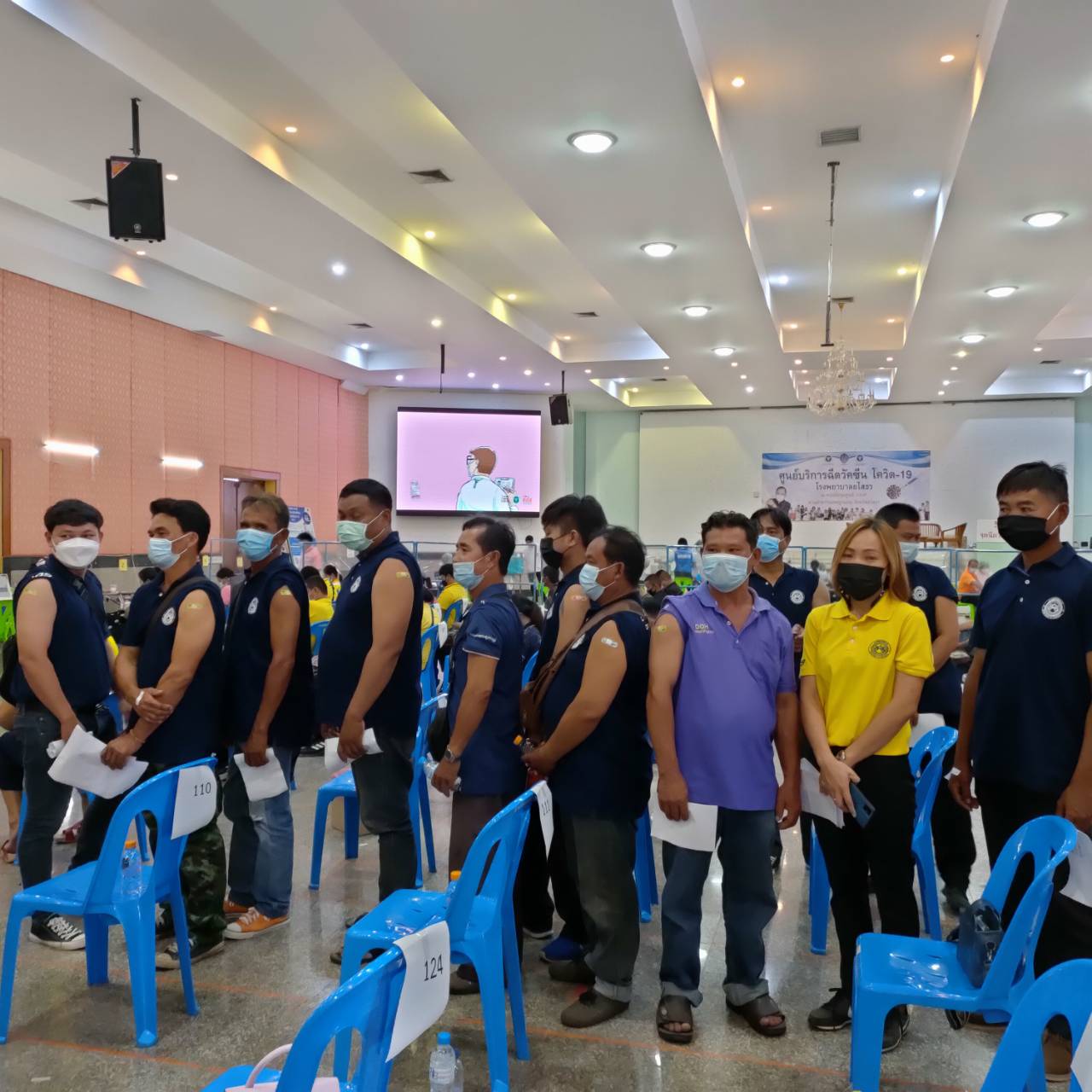 นำเจ้าหน้าที่เข้ารับการฉีดวัคซีนเพื่อสร้างภูมิคุ้มกันไวรัส Covid 19ณ อาคารโอทอป สวนสาธารณพญาแถน ต.ในเมือง อ.เมืองยโสธร จ.ยโสธร