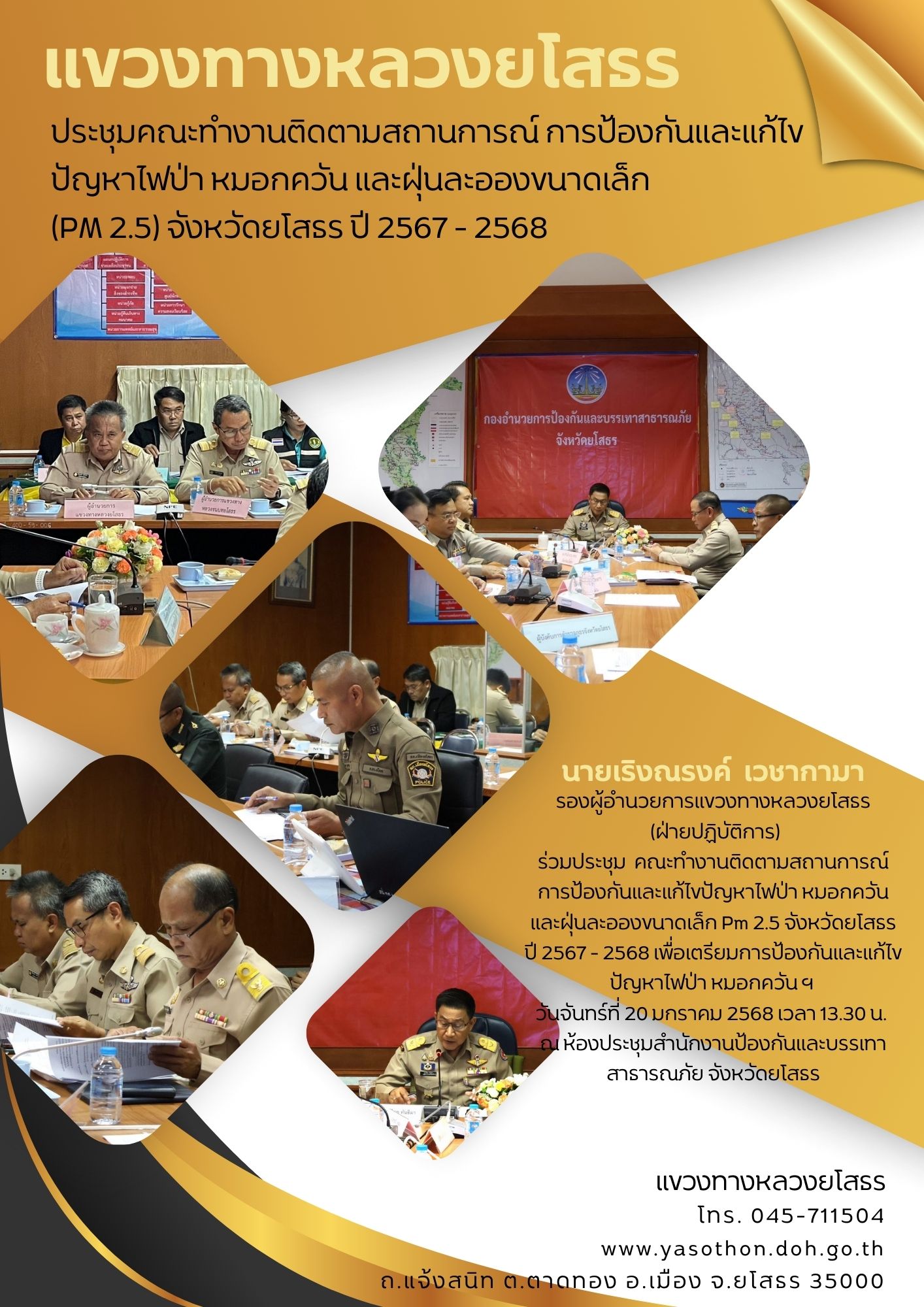 เข้าร่วมประชุมคณะทำงานติดตามสถานการณ์การป้องกันและแก้ไขปัญหาไฟป่า หมอกควันและฝุ่นละอองขนาดเล็ก Pm 2.5 จังหวัดยโสธร ปี2567- 2568 เพื่อเตรียมความพร้อมการป้องกันและแก้ไขปัญหาไฟป่า หมอกควันฯ ณ ห้องประชุมสำนักงานป้องกันและบรรเทาสาธารณภัย จังหวัดยโสธร