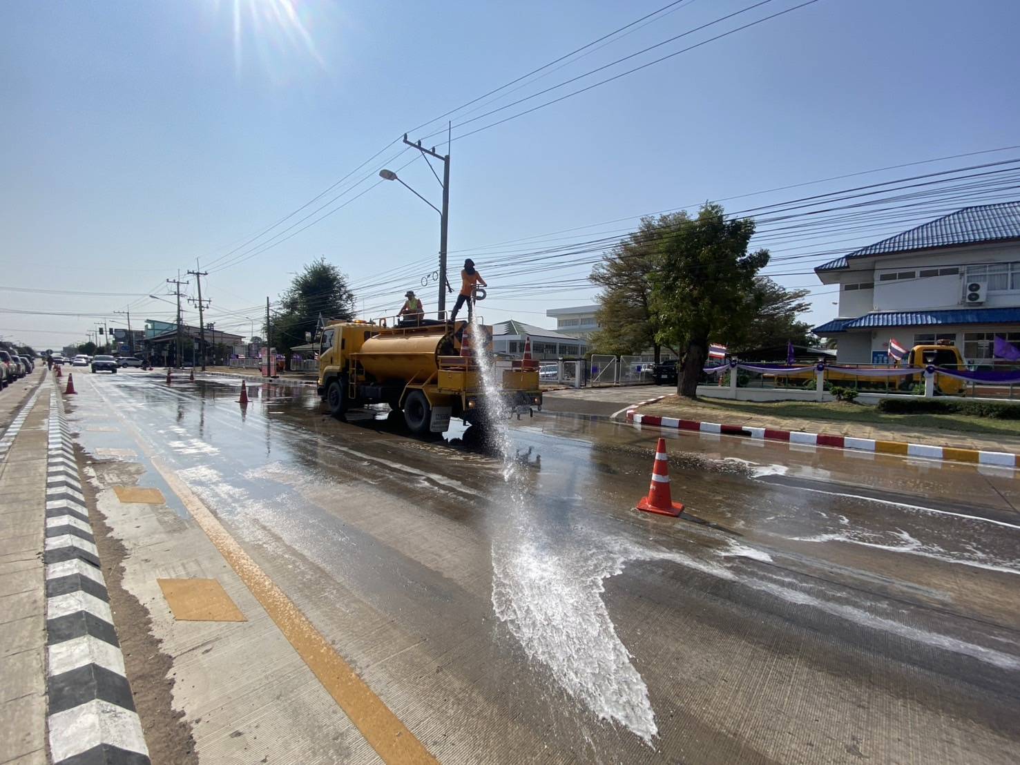 - ฉีดล้างทำความสะอาดพื้นถนน