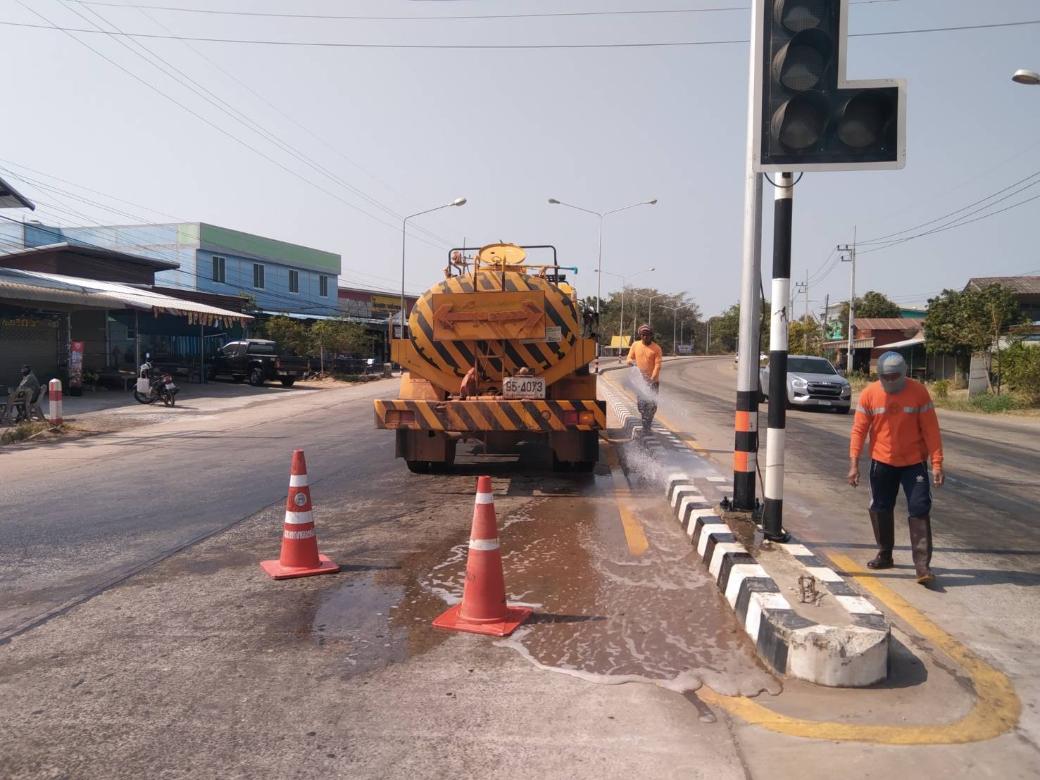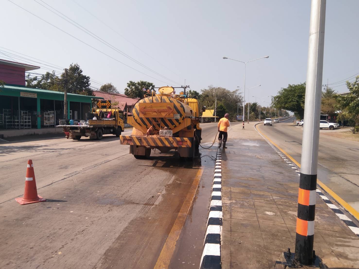 มอบหมายให้หมวดทางหลวงหนองพอก ทำความสะอาด ผิวจราจร ฉีดล้างทำความสะอาดพื้นถนน และเกาะกลางถนน ตามมาตรการลดปัญหาฝุ่นละออง PM 2.5 ในทางหลวงหมายเลข 2116 ตอน โพนทอง - ห้วยคล้อ ระหว่าง กม.88+300 - กม.89+500 เพื่อความสะอาดเรียบร้อย และลดภาวะฝุ่นละออง PM 2.5