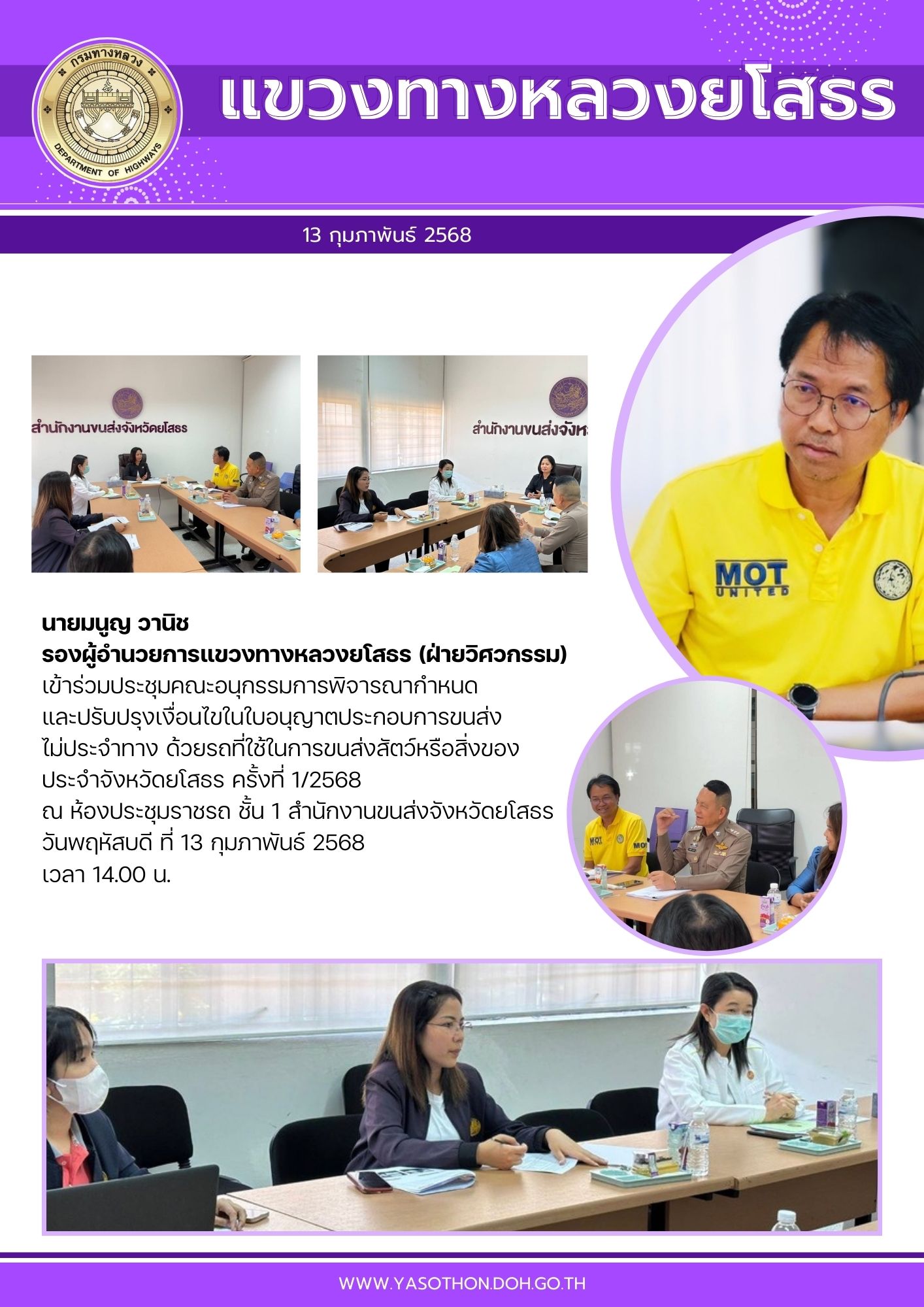 นายมนูญ วานิช รองผู้อำนวยการแขวงทางหลวงยโสธร