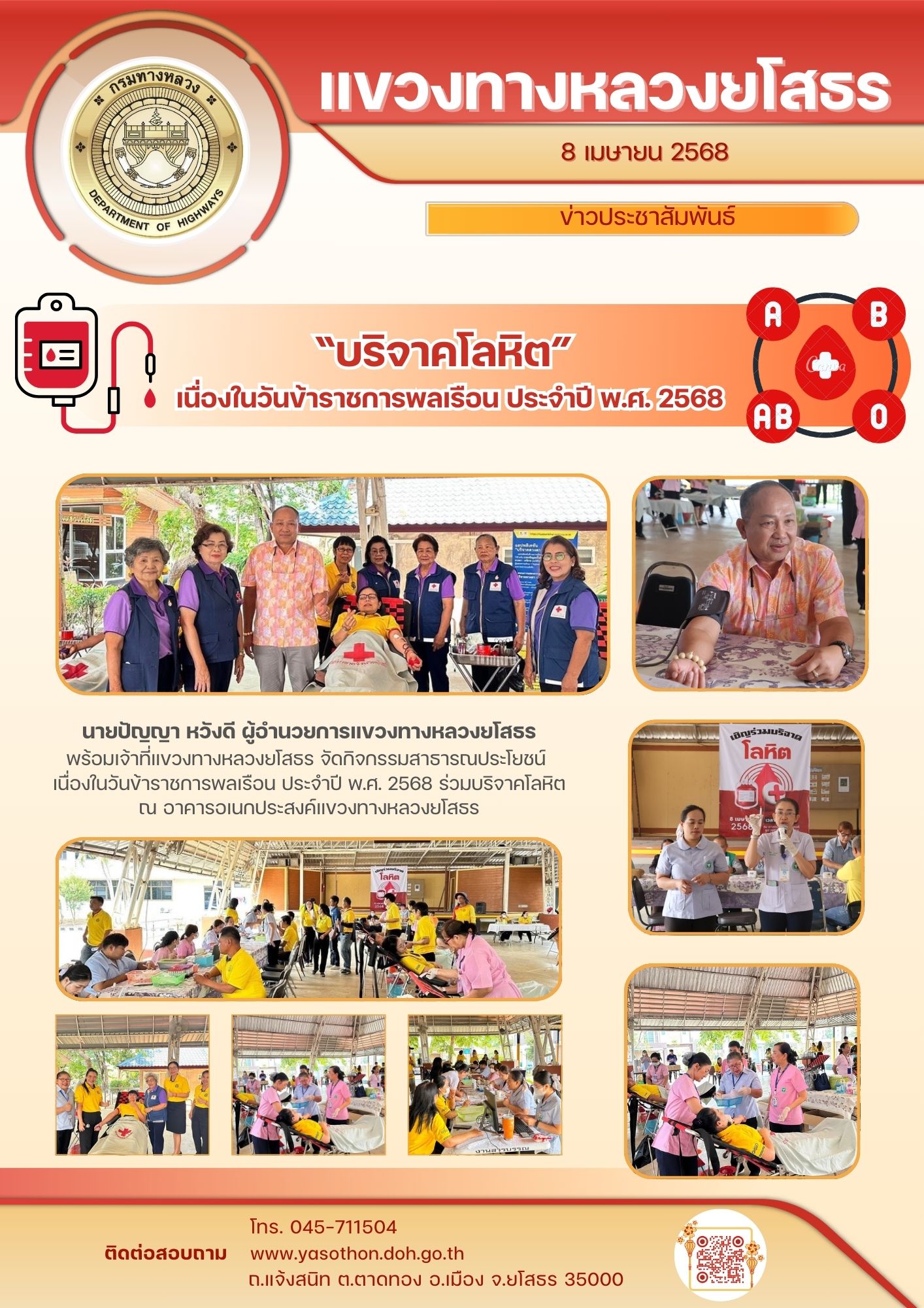 ร่วมบริจาคโลหิต ณ อาคารอเนกประสงค์แขวงทางหลวงยโสธร